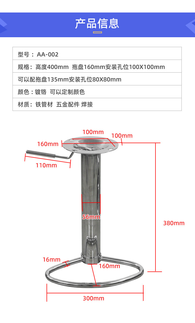 高度380mm 拖盘160mm安装孔位100X100mm 可以配拖盘135mm安装孔位80X80mm