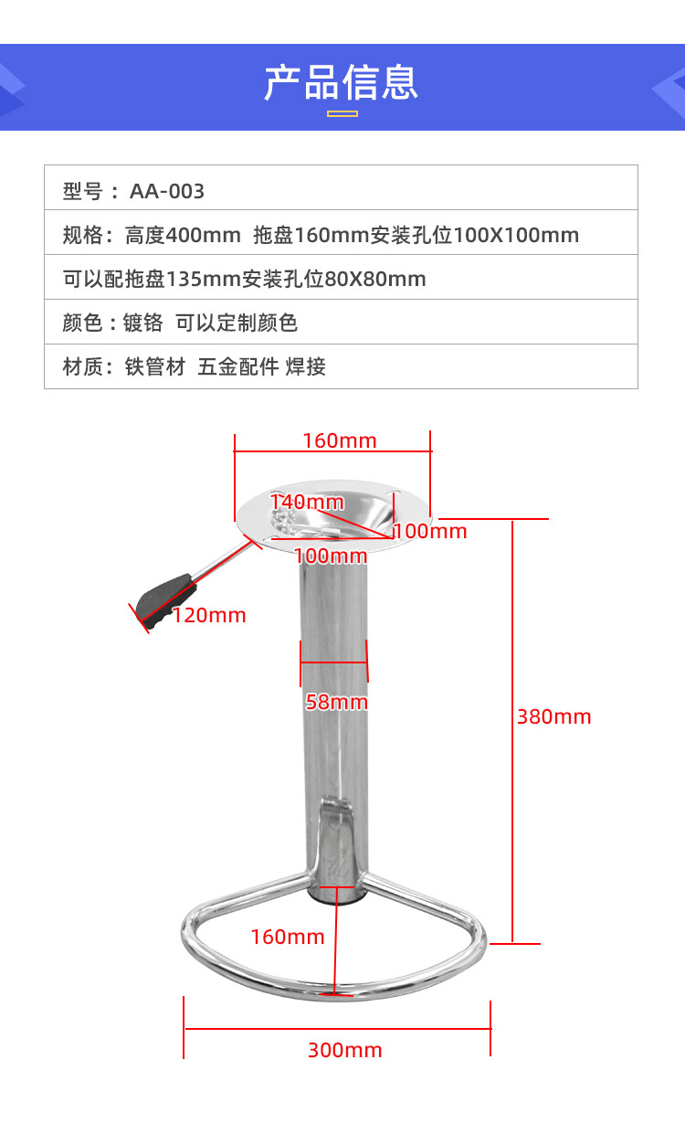 高度380mm 拖盘160mm安装孔位100X100mm 可以配拖盘135mm安装孔位80X80mm