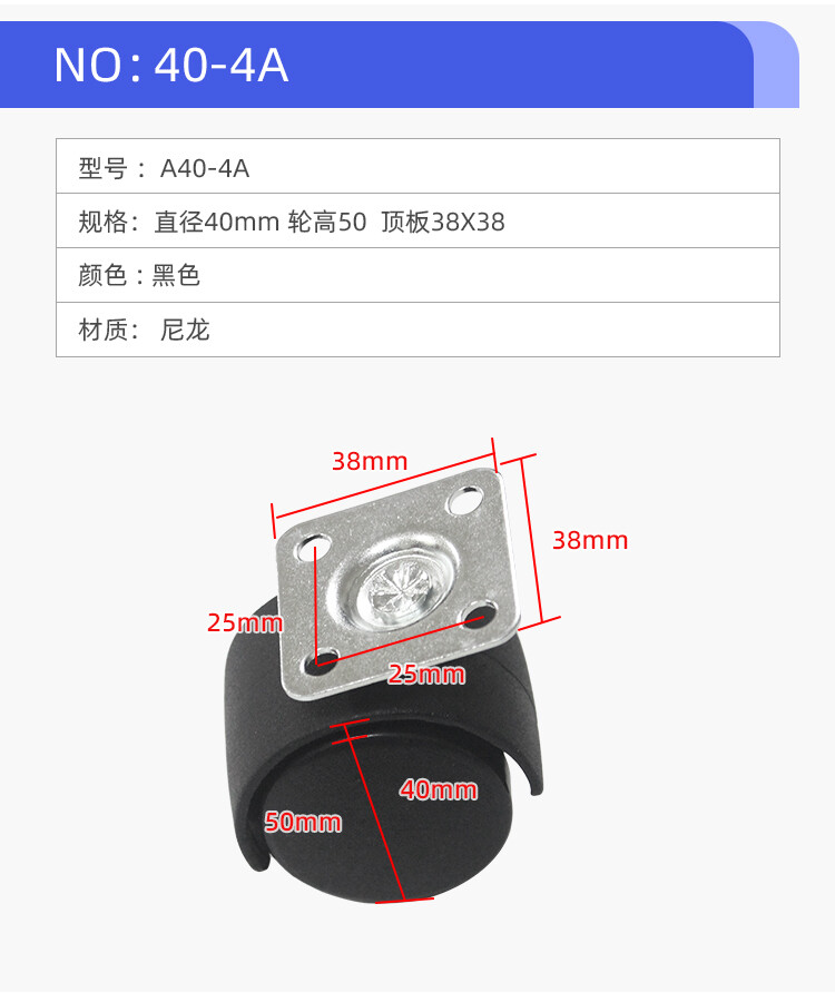 直径40mm 轮高50 顶板38X38