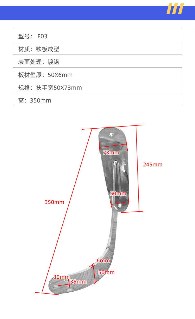 扶手宽50X73mm 高:350mm