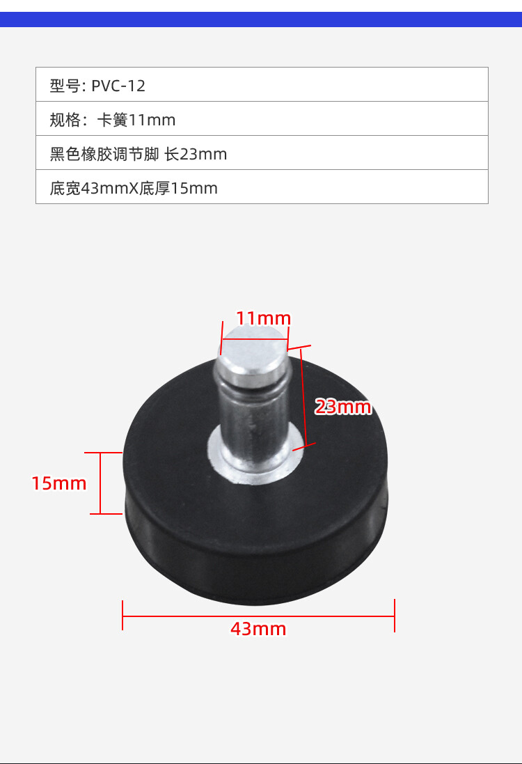 卡簧11mm黑色橡胶调节脚 长23mm (底宽43mmX底厚15mm)