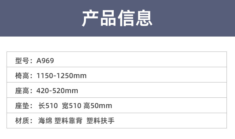 椅高:1150-1250mm 座高:420-520mm