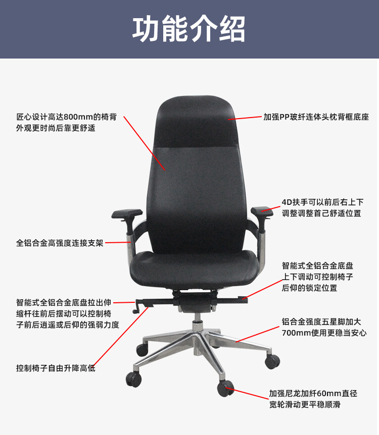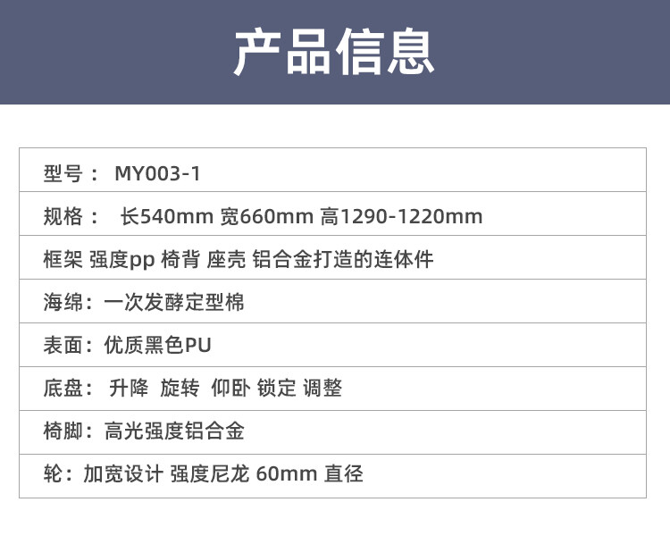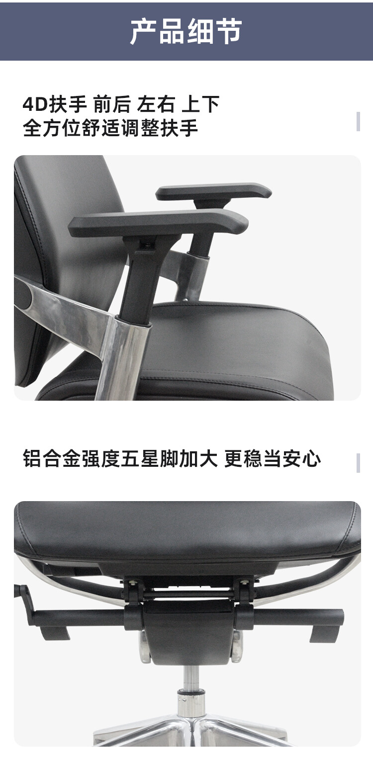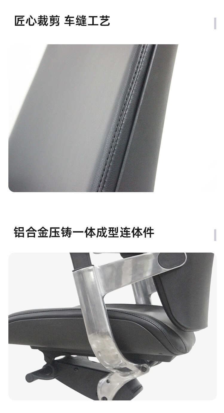 框架:强度pp 椅背 座壳 铝合金打造的连体件 表面:优质黑色PU