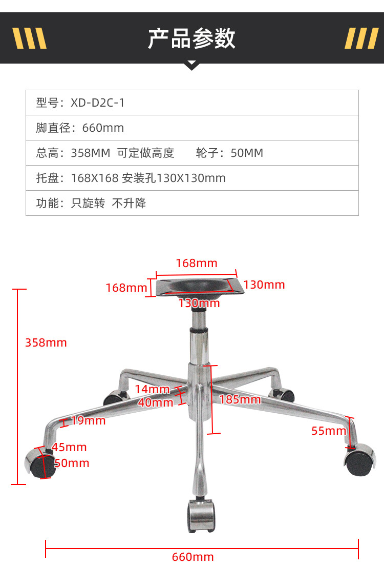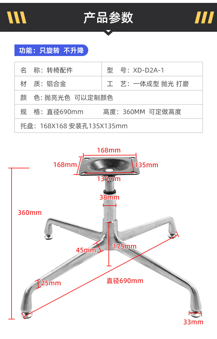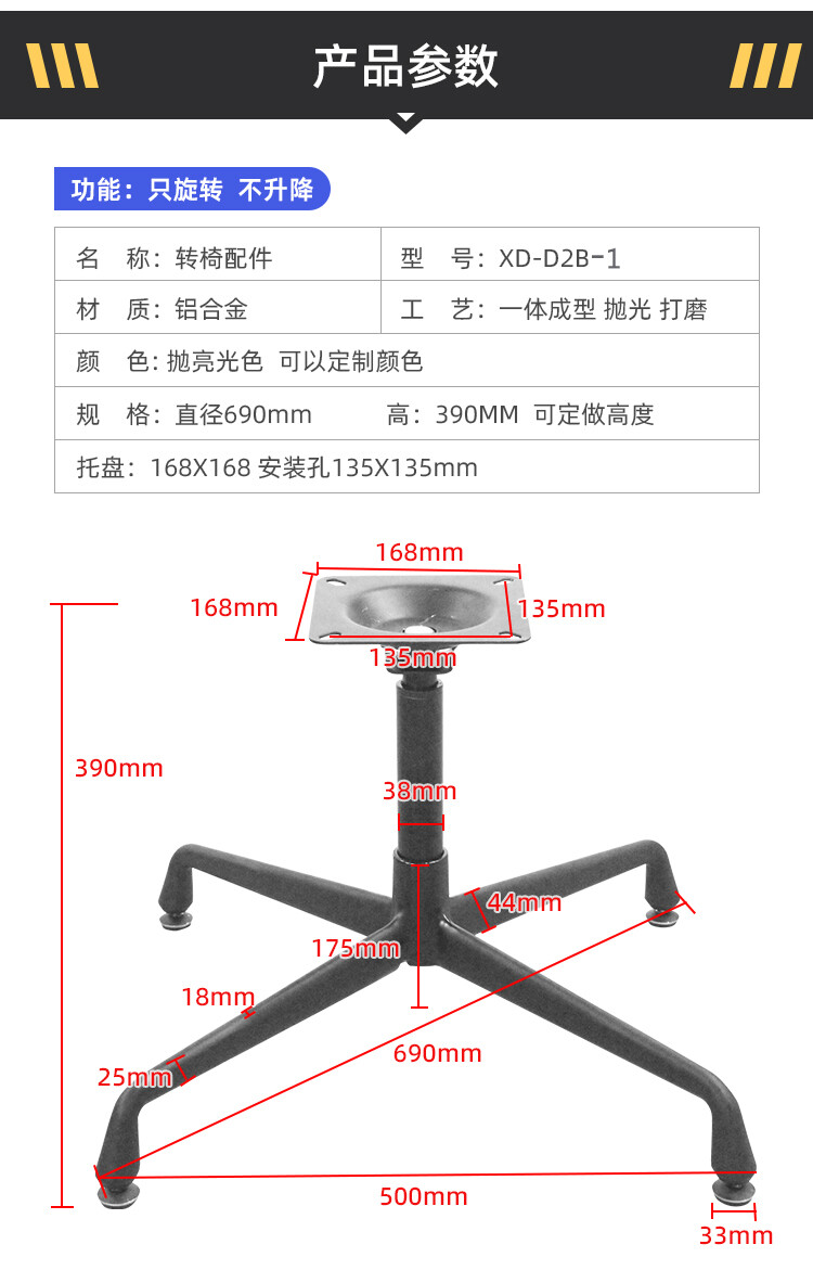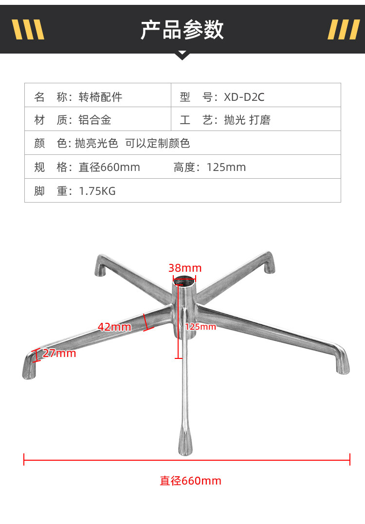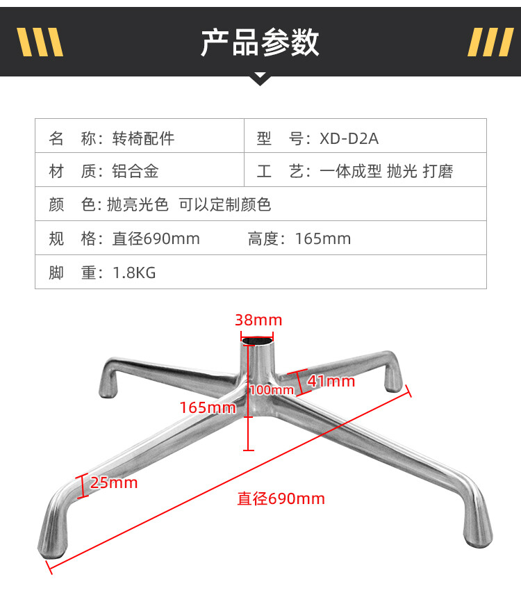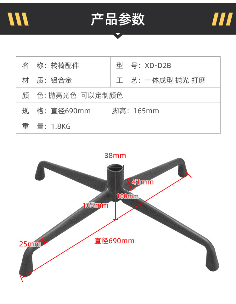 四星脚直径:690mm 五星脚直径:660mm 中心孔距:38mm 脚高:165mm
