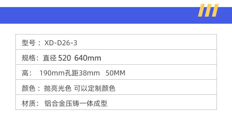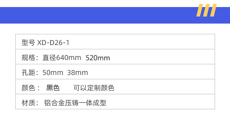 脚直径640mm 520mm 高: 190mm 孔距 :50mm 38mm