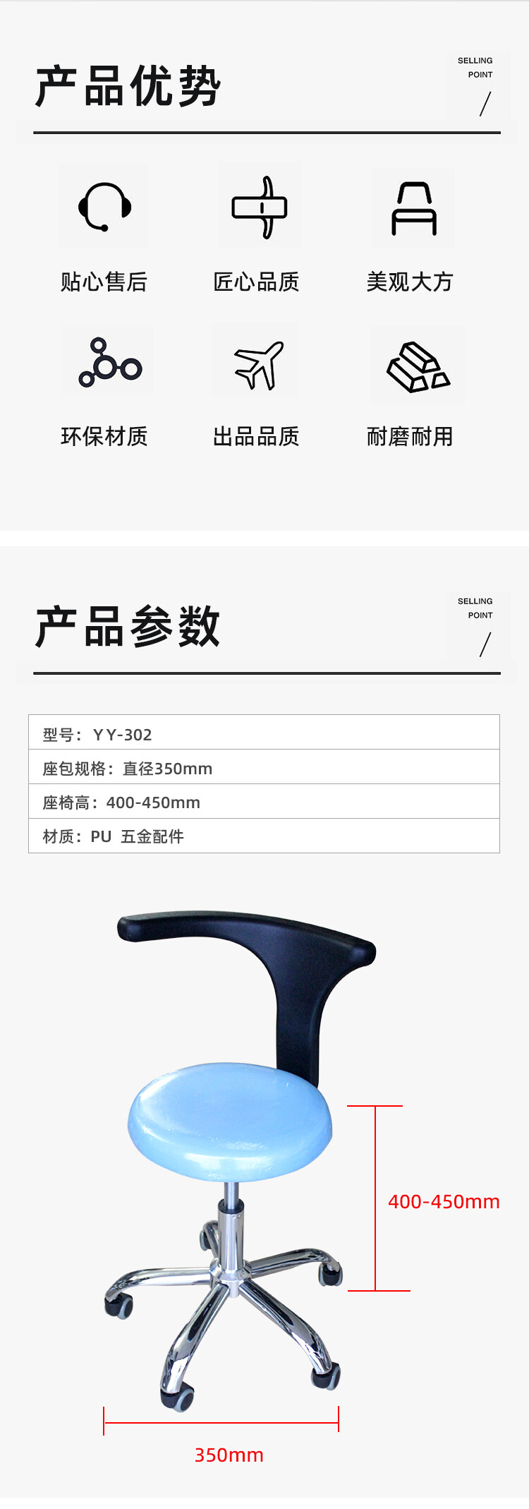 直径350mm 座椅高:400-450mm