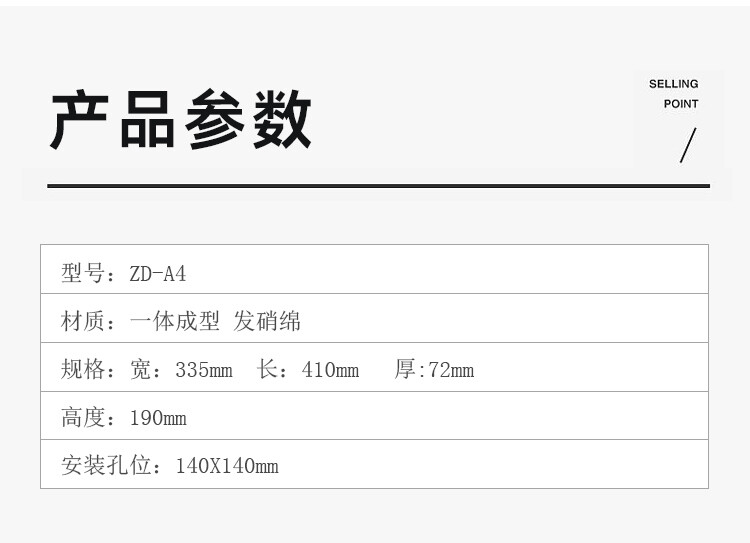 宽:335mm 长:410mm 高:190mm 厚:72mm 孔位:140×1410mm 孔位:95×95mm